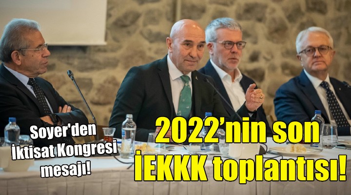 İzmir Ekonomik Kalkınma Koordinasyon Kurulu’nun (İEKKK) 113’üncü toplantısı, Tarihi Havagazı Fabrikası’nda yapıldı. İzmir Büyükşehir Belediye Başkanı Tunç Soyer’in ev sahipliğinde düzenlenen toplantıda, Cumhuriyet’in 100’üncü yılı kapsamında planlanan çalışmalar masaya yatırıldı. Kurul üyeleri daha sonra hep birlikte yeni yıl pastası kesti. Toplantıda Kentimiz İzmir Derneği Yönetim Kurulu Başkanı Uğur Yüce ve Genel Sekreteri Sedef Özer tarafından “Okul Dışı Yenilikçi Eğitim Çalışmaları” sunumu yapıldı.