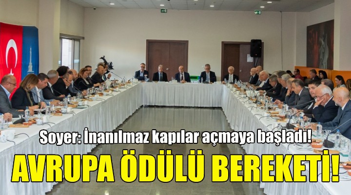 İzmir Ekonomik Kalkınma Koordinasyon Kurulu'nun (İEKKK) 111. toplantısı Ahmed Adnan Saygun Sanat Merkezi'nde İzmir Büyükşehir Belediye Başkanı Tunç Soyer’in ev sahipliğinde yapıldı. Başkan Soyer, Ekim ayında Brüksel, Viyana ve Strazburg'da yaptıkları görüşmelerin İzmir açısından çok verimli geçtiğini ifade ederek, “Brüksel'de bir İzmir Evi açmıştık. Bu ise Brüksel'deki irtibatlarımızın en verimlisi oldu. En üst düzeyde görüşmeler yaptık. Interreg NEXT Akdeniz Havzasında Sınır Ötesi İşbirliği Programı var. 10 senedir buraya taraf olmak, hibe programlarından yararlanmak için başvuru yapardık. İzmir hep dışarıda tutulurdu. İlk defa İzmir dâhil edildi. 253 milyon euroluk da bir kaynak ayrıldı bu başlığa. Hemen bu çerçevede çalışmaya başladık. Viyana'ya Avrupa İmar ve Kalkınma Bankası (EBRD) ve Uluslararası Finans Kurumu (IFC) ile görüşmek üzere gittik. Yine üst düzey görüşmeler yaptık. İzmir'le ilgili kaynak aktarma konusunda son derece cömert olduklarını söyleyebilirim. Avrupa Ödülü İzmir'e çok yaradı. Bize inanılmaz kapılar açmaya başladı” dedi.