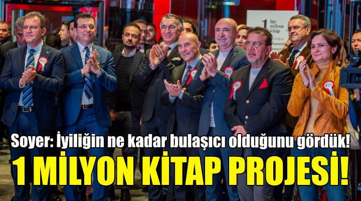 “1 Milyon Kitap” projesinin ilk kurumsal destekçisi olan İzmir Büyükşehir Belediye Başkanı Tunç Soyer, projenin dayanışma gecesinde teşekkür plaketi aldı. İstanbul Zorlu Performans Sanatları Merkezi’nde düzenlenen geceye Başkan Tunç Soyer’in yanı sıra İstanbul Büyükşehir Belediye Başkanı Ekrem İmamoğlu, Mersin Büyükşehir Belediye Başkanı Vahap Seçer, CHP İstanbul İl Başkanı Canan Kaftancıoğlu, CHP İstanbul Milletvekili Gürsel Tekin, siyaset dünyasının temsilcileri, sanatçılar ve çok sayıda destekçi katıldı.