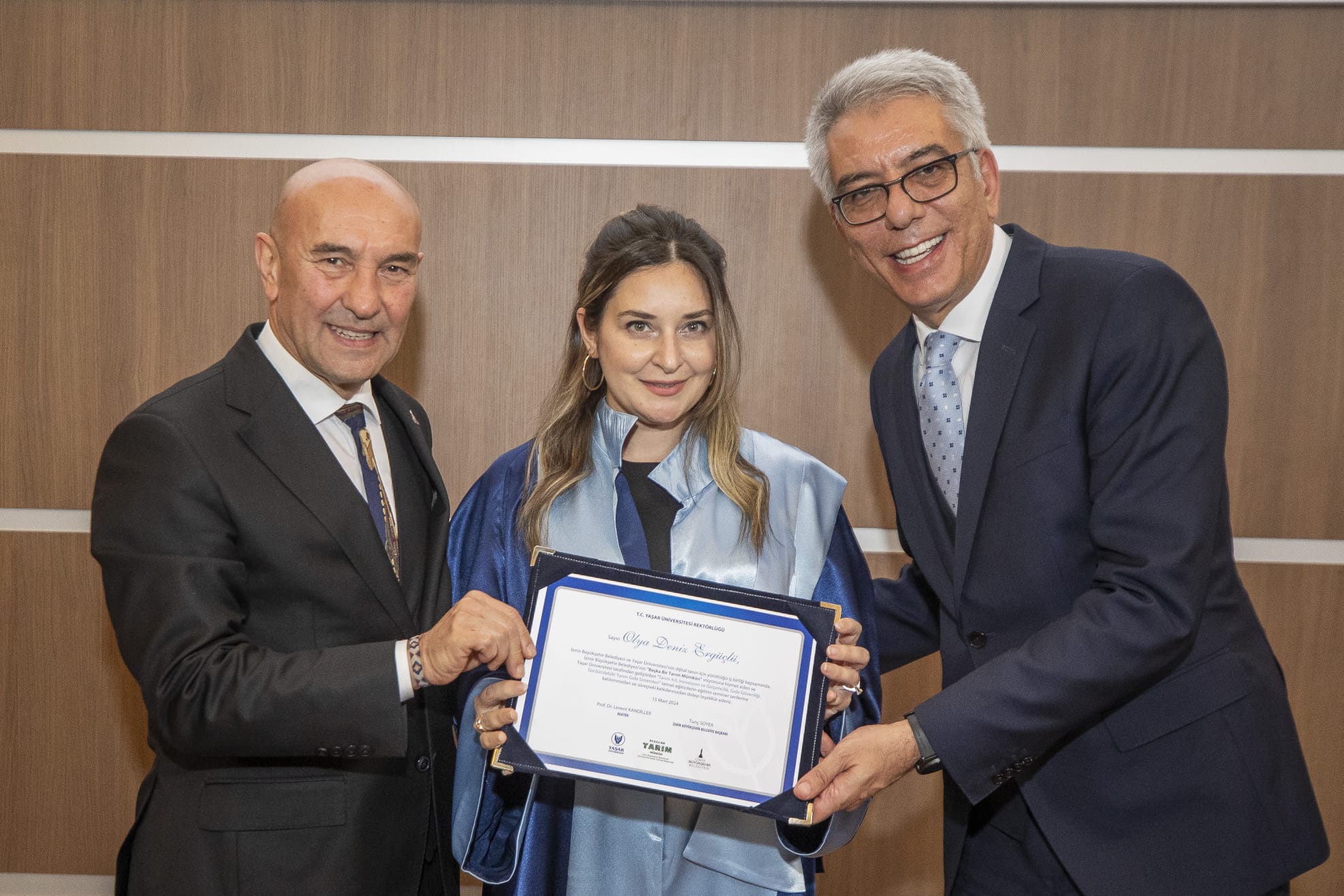 Yaşar Üniversitesi Rektörü Prof. Dr. Levent Kandiller ise, “Çok mutluyuz sizi yanımızda görmekten. Bize çok destek verdiniz. Seferihisar Belediye Başkanlığı döneminden itibaren 8 yıldır hep bize destek verdiniz, önümüzü açtınız, kolaylaştırıcı oldunuz. Biz minnettarız. Hep beraber güzel işler yapıyoruz. Beraber tasarlayıp beraber üretiyoruz. Ürettikçe büyüyoruz” dedi.