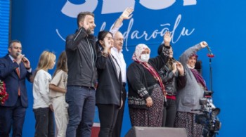 Mitinge, İzmirli belediye başkanları, milletvekilleri ve parti temsilcileri de katıldı.