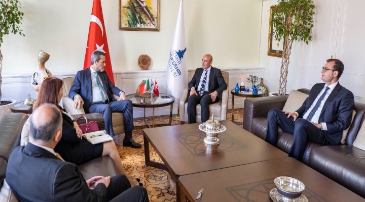 Portekiz’in Ankara Büyükelçisi Jaime Van Zeller Leitão, İzmir Büyükşehir Belediye Başkanı Tunç Soyer’i ziyaret etti. Büyükelçi Jaime Van Zeller Leitão, İzmir’de birçok kurumu ziyaret ettiklerini ve ülkeler arasında ilişkileri geliştirmek istediklerini söyledi.