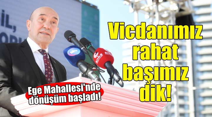 Başkan Soyer ayrıca, “Ayinesi iştir kişinin lafa bakılmaz. Biz kentsel dönüşümü hiçbir zaman vitrini süslemek olarak görmedik. Bizim için kentsel dönüşüm, vatandaşlarımızın içinde güvenle yaşayabileceği evler inşa etmek demek. İzmir'in refahını büyütmek demek. Biz bu şehrin binalarını değil, geleceğini inşa ediyoruz. Ege Mahallesi Kentsel Dönüşüm alanında bugün temelini attığımız çalışmalarımız, işte bu kararlılığımızın bir yansımasıdır. Projemiz, Ege Mahallesi’ndeki vatandaşlarımıza ve İzmir’imize hayırlı uğurlu olsun. Hepinizi İzmir aşkıyla selamlıyorum. Aşkla İzmir. Daima İzmir” ifadelerini kullandı.