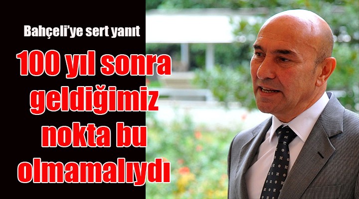 İzmir Büyükşehir Belediyesi tarafından hazırlatılan 9 Eylül afişlerine sert tepki gösteren Devlet Bahçeli, şu ifadeleri kullanmıştı: “30 Ağustos’un mirasını yağmalayan, İzmir’in kurtuluşunu tartışmaya açan işbirlikçilik, iradesizlik ve gayri milliktir. Söz konusu afişlerin öznesi barış değil zafer olmalıdır. Tarihe ve milli tecrübelere bakarak diyebiliriz ki, zafersiz bir barış teslimiyetçilik, barışsız bir zafer ise tedbirsizlik, temkinsizlik ve temelsizliktir. Düşmandan aman dileyen bir çürümüşün, zaferimizi barış diyerek gölgeleyen bir Megali İdea hayranının darbeci ve zalim babası gibi zillette olduğu ayan beyan ortadadır. Güzel İzmir’imiz 9 Eylül 1922’de kurtulmuştur, fakat yüz yıl sonra fiili esaret altında, zincirlenmiş halde bulunmasından mütevellit perişan vaziyettedir.”