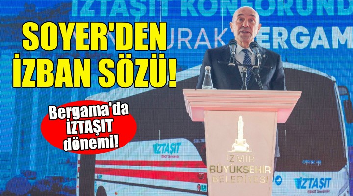 Başkan Soyer, konuşmasında Bergamalılara bir de müjde verdi. İzmir Büyükşehir Belediyesi tarafından hazırlıkları tamamlanan İZBAN’ın Bergama etabının 2024 sonrası yapılmasının planlandığını ifade eden Başkan Soyer, “Önümüzdeki dönemde Bergama’ya İZBAN’ı getireceğim. İZBAN’ı Bergama’ya getirmek için Raylı Sistemler Dairemiz son dört yılda tüm hazırlıkları tamamladı. Çok sayıda alt geçit ve üst geçit projesi hazırladık. Şimdi sıra üzerine düşenleri yapmak için TCDD’de. Sözüm söz; dediğimi yapmak için canla başla çalışacak, TCDD’yi ikna edecek ve tüm engelleri aşarak İZBAN’ı Bergama’ya mutlaka getireceğim” dedi.
