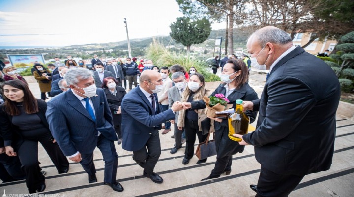 Başkan Soyer'e programda İzmir Büyükşehir Belediyesi Genel Sekreteri Dr. Buğra Gökçe, İzmir Büyükşehir Belediyesi Genel Sekreter Yardımcıları Eser Atak, Suphi Şahin, Yıldız Devran, İZSU Genel Müdürü Aysel Özkan, İZBETON Genel Müdürü Heval Savaş Kaya, Ulaşım Dairesi Başkanı Mert Yaygel, Fen İşleri Dairesi Başkanı Ozan Yılmaz, Park ve Bahçeler Dairesi Başkanı Çiğdem Aşıcı eşlik etti.