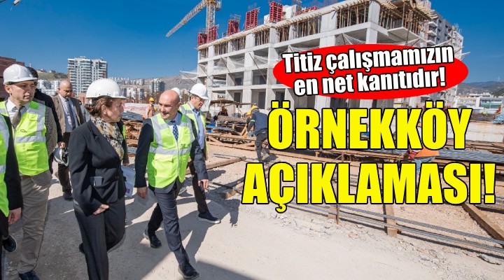 ''Örnekköy Kentsel Dönüşüm Projemize Bakanlık tarafından olumlu rapor verildi. Rapor; belediyemizin titiz çalışmalarının en net kanıtıdır. Ancak akıllarda hiçbir tereddüt kalmaması ve yaratılan olumsuz algıyı tamamen ortadan kaldırmak için bir karar aldık. İnşaatını inisiyatifimizle durdurduğumuz 300 m2 alanı yıkıp yeniden yapacağız.''