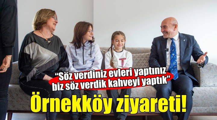 Başkan Soyer de unutulmaz bir anı yaşadığını belirterek, “Beni çok mutlu ettiniz. Teşekkür ediyorum” diye cevap verdi. Başkan Soyer’e Türk kahvesi de ikram eden 9 yaşındaki minik Düdükçü ayrıca, “Siz söz verdiniz evleri yaptınız, biz söz verdik kahveyi yaptık” dedi. Soyer de iki kardeşe kulaklık ve satranç takımı hediye etti.