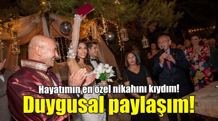 ''Bugün hayatımın en özel nikahını kıydım. İlk göz ağrımız Duygu’yla sevgili oğlumuz Çağan’ı evlendirdik. Bu mutlu günümüzde yanımızda olan tüm misafirlerimize sonsuz teşekkürler. Evlatlarımıza, aşk dolu, sağlıklı, huzurlu, güleryüzlü bir ömür diliyorum.''