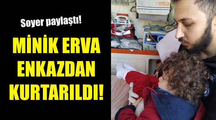 Depremin ardından bölgeye gönderilen İzmir Büyükşehir Belediyesi ekipleri de kurtarma çalışmalarına destek veriyor. Ekiplerin yaptığı çalışmalar sonucunda 3 yaşındaki Evra bebek enkazdan sağ olarak kurtarıldı. Erva, deprem bölgesine takviye için giden İzmir Büyükşehir Belediyesi Eşrefpaşa Hastanesi ekipleri tarafından hastaneye götürülerek tedavi altına alındı.