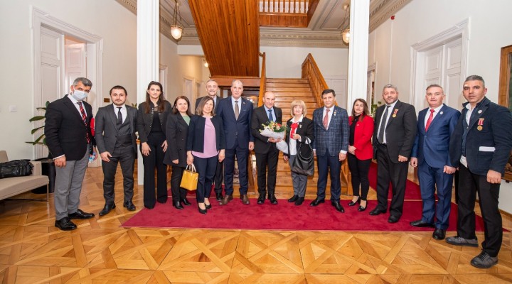 İzmir’deki şehit ve gazi derneklerinin temsilcileri,18 Mart Şehitleri Anma Günü ve Çanakkale Zaferi’nin 107’inci yıldönümü nedeniyleİzmir Büyükşehir Belediye Başkanı Tunç Soyer’i ziyaret etti. Başkan Tunç Soyer, şehit ve gazi derneklerinin temsilcilerini ağırlamaktan duyduğu memnuniyeti dile getirdi.