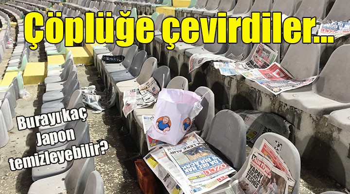 Abdullah Çelebi /SONKALE-TFF 3. Lig Play-Off Yarı Finalinde Karşıyaka ile Van Büyükşehir Belediyespor arasında oynanan müsabaka sonrası İzmir Atatürk Stadı çöplüğe döndü. Yaklaşık 15 bin yeşil-kırmızılı taraftar, stadın kapalı tribününü tamamen doldururken, 0-0 sona eren karşılaşma sonrası ortaya çıkan görüntü pes dedirtti. Taraftarların tribünden ayrılmasından sonra koltukların üzerindeki çöpler, su şişeleri, çekirdek kabukları, gazeteler, sigara kutuları ve izmaritler ile çeşitli ambalajlar bir çöp dağını andırıyordu. Stat görevlileri karşılaşma sonrası çöp torbaları ile mesaiye başlarken, akıllara geçtiğimiz yaz Rusya'da düzenlenen Dünya Kupası'nda Japon taraftarların gittikleri her maçtan sonra tribünleri temizlediği anlar geldi. O dönem Japon'ların statlarda yaptığı temizlik Türkiye dahil birçok ülkede sık konuşulmuş ve sosyal medyada da 'Japon kültürü her millete örnek olmalı' yorumları yapılmıştı. Karşıyaka maçı sonrası stadın çöplüğe dönen hali ise 'Burayı kaç Japon temizleyebilir" espirilerine neden oldu.