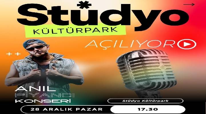 İzmirli gençlerin yeni buluşma noktası olacak Stüdyo Kültürpark, 28 Aralık Pazar saat 17.30’da kapılarını açacak. Açılış töreninin hemen ardından ünlü sanatçı Anıl Piyancı, sevenleri için ücretsiz bir konser verecek. İzmir Büyükşehir Belediyesi, müzik dolu bu özel güne ve açılış coşkusuna ortak olmaları için tüm İzmirlileri davet ediyor.