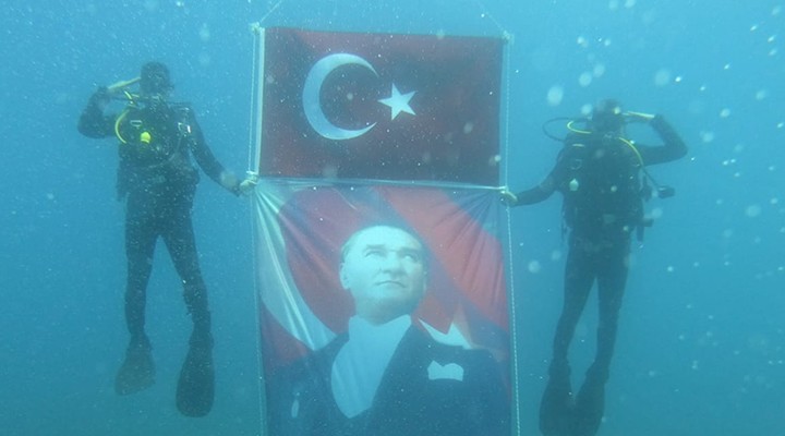 SAK mensubu jandarmalar, Menderes ilçesi Özdere Mahallesi açıklarında yaklaşık 20 metre derinliğe daldı. Jandarmalar, su altında Türk bayrağı, Atatürk fotoğrafı ve "İzmir İl Jandarma Komutanlığı SAK Timi 30 Ağustos Zafer Bayramı kutlu olsun" yazılı pankart açarak fotoğraf çektirdi.