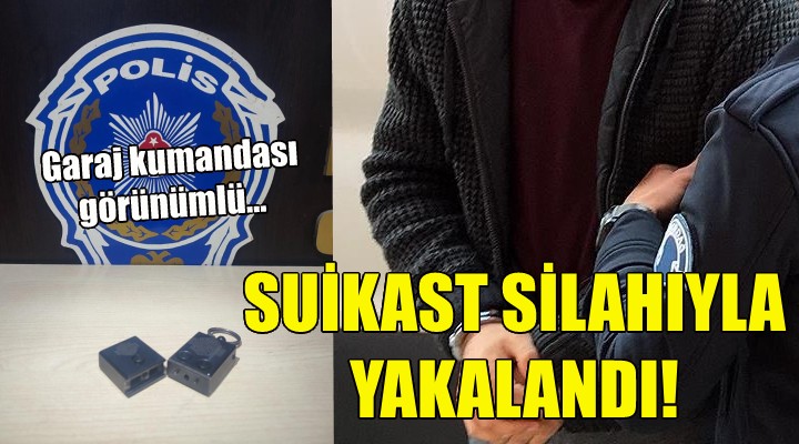 İzmir'in Buca ilçesinde garaj kumandası görünümlü suikast silahıyla yakalanan şüpheli tutuklandı.