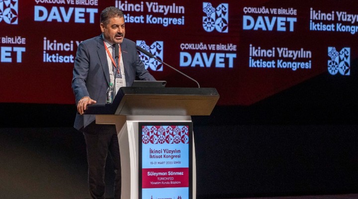 İzmir Büyükşehir Belediyesi tarafından düzenlenen İkinci Yüzyılın İktisat Kongresi’nin son gününde TÜRKONFED Yönetim Kurulu Başkanı Süleyman Sönmez, “Cumhuriyetimizin ikinci yüzyılında hayalimizdeki Türkiye” başlıklı bir konuşma yaptı. Uzlaşı ve ortak aklın kongrenin ana temasını oluşturduğunu belirten Sönmez, “Cumhuriyet tarihinin miladı olan İktisat Kongresini bizlere miras bırakanların izinden, sizlerle yürüyor olmaktan gurur duyuyorum” dedi.