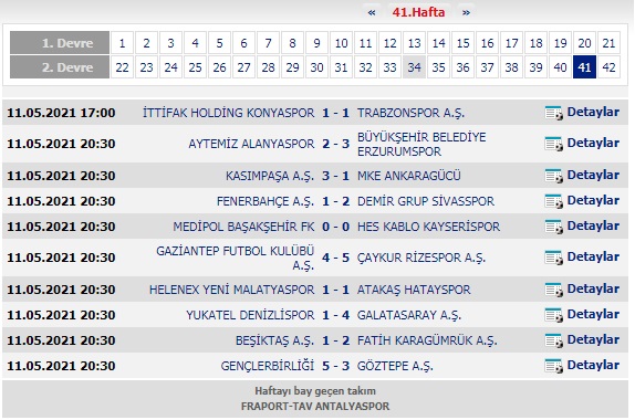 SÜPER LİG 41. HAFTA SONUÇLAR
