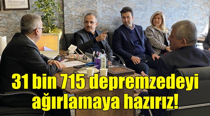 “Gerek Gaziantep’ten tahliye edilerek İzmir’e gönderilen gerekse kendi isteği ile gelen ve barınma sorununu çözemeyen vatandaşlarımız için hazırız. Öğrenci yurdu kapasitesi 26 bin 711, kamuya ait misafirhanelerimizde toplam 2 bin 538 kişiyi ağırlayabiliyoruz. Otel ve apartlarda da 2 bin 466 olmak üzere; toplam 31 bin 715 depremzedemizi ağırlamaya hazırız. Şu anda buralara yerleşen depremzedelerimiz var. Hastanelerimizde tedavi altına alınan yaralı kardeşlerimiz var. Tümüyle yakından ilgileniyoruz.”