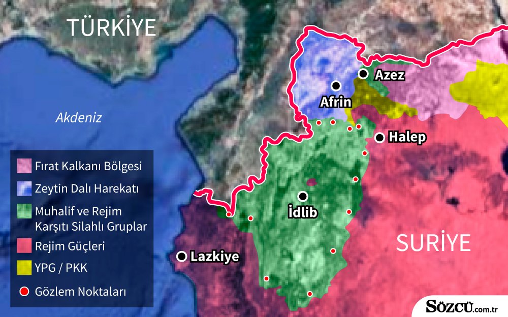 Türkiye-Rusya-İran arasında Astana görüşmeleri sonucu 2017’de çatışmasızlık bölgesi ilan edilen İdlib’de Türkiye’ye ait 12 gözlem noktası bulunuyor.
