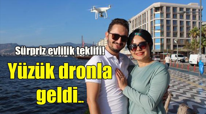Alsancak Kordon'da gerçekleştirilen sürpriz evlilik teklifi, ilgi ve şaşkınlıkla izlendi. Ahmet Özdemir, kız arkadaşı Aynur Özdemir'le denize karşı bir bankta otururken arkadaşı dron operatörü Gani Güleç harekete geçti. Denizden gelen dronu gören Aynur Özdemir, önce ne olduğunu anlamadı. Çevredeki vatandaşlar gibi dronu ilgiyle izleyen Aynur Özdemir'e, yaklaşan hava aracından yüzük kutusunu alan Ahmet Özdemir diz çökerek evlilik teklifinde bulundu. Aynur Özdemir teklife "Evet" yanıtı verdi.