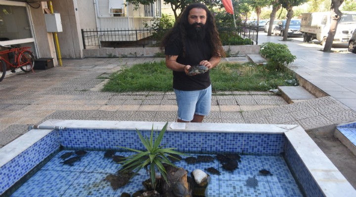 Karşıyaka ilçesinde fotoğrafçılık yapan Volkan Çakır, yaklaşık 20 yıl önce beslediği birkaç tane su kaplumbağası için işyerinin önüne süs havuzu yaptı. Havuzu minik bitki ve kütüklerle dolduran Çakır, suyunu sürekli temizleyerek kaplumbağalarını beslemeye başladı. Zaman içerisinde kaplumbağa sahiplenen ancak büyüdükten sonra evdeki yaşam alanı daralan bu canlılara bakamayan vatandaşlar, onları bu süs havuzuna bıraktı. Bu havuzda yıllar içinde 2 binden fazla kaplumbağa yetişti ve Çakır tarafından doğaya bırakıldı. Kaplumbağalara özenle bakan Çakır, iş yerinin önündeki havuzu onlara açmanın mutluluğunu yaşıyor. Mahalle sakinlerinin de ilgi odağı olan kaplumbağalar, haftanın her günü kaplumbağa yemi ve etle besleniyor.