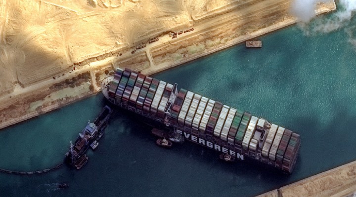 Ever Given konteyner gemisi, 23 Mart'ta şiddetli rüzgarlar sebebiyle Süveyş Kanalı'nı geçerken karaya oturmuş ve yüzlerce geminin kanalı geçmesini engelleyerek küresel ticareti aksatmıştı. 6 günlük kurtarma çalışmasının sonucunda gemi tekrar yüzdürülmüş ve gemi sahipleriyle kanal otoritesi arasında olayın sebep olduğu hasara karşılık tazminat anlaşması yapılmıştı.