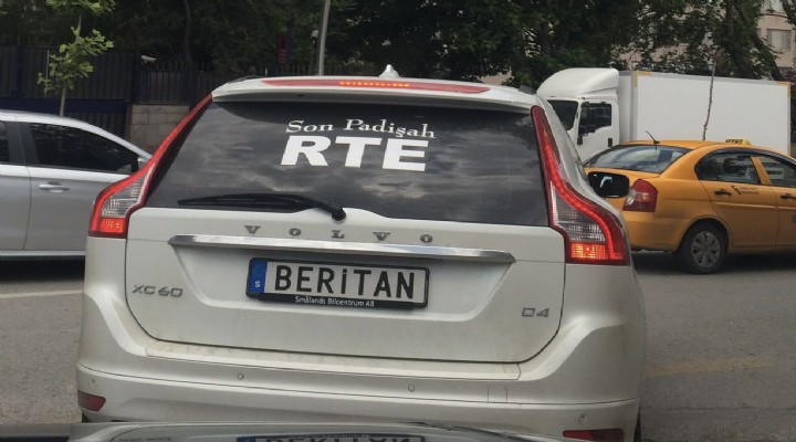 "Bugün meclis kapısından çıkarken bir araç gördüm ve fotoğrafını çektim. Camında, 'Son Padişah RTE' yazıyordu ve plakası özeldi. Meclise üzerinde Atatürk resmî bulunan tişört ile girmek yasak ama padişahlığını İlan ettikleri RTE yazısı ile girmek serbest. Bugünler geçecek."