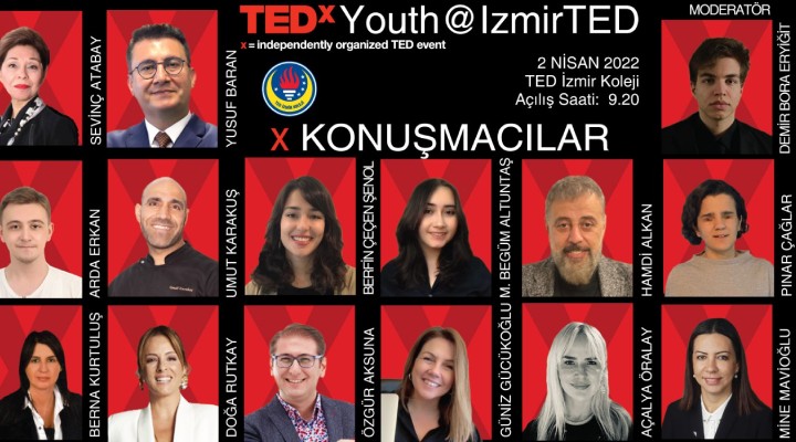 2 Nisan Cumartesi günü saat 10.00’da başlayacak bu büyük organizasyon tüm gün devam edecek. TED İzmir Koleji’nin ev sahipliğinde yapılacak bu anlamlı organizasyonda tüm konuşmacılar önemli mesajlar verecek.