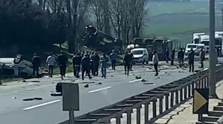 Kaza nedeniyle otoyolda trafik tek şeritten sağlanıyor; ekiplerin olay yerindeki çalışması sürüyor.