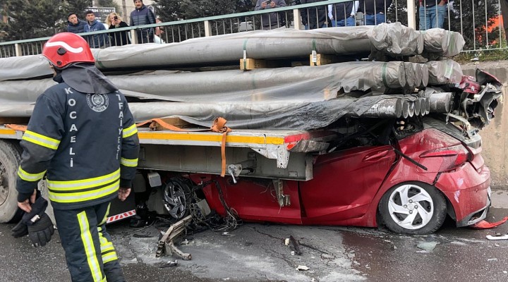 Kaza, sabah saatlerinde D-100 kara yolunun Dilovası ilçesi geçişinde meydana geldi. İstanbul istikametine giden Samet K. yönetimindeki 31 FMH 597 plakalı otomobil, emniyet şeridinde duran Şaban A. yönetimindeki 41 YH 249 plakalı demir yüklü TIR’a arkadan çarptı.