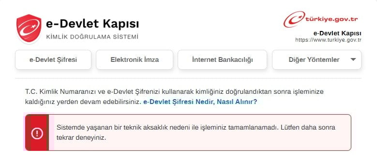 Yetkililerden konuyla ilgili resmi bir açıklama yapılmazken, vatandaşlara işlemlerini daha sonraki saatlerde tekrar denemeleri öneriliyor.