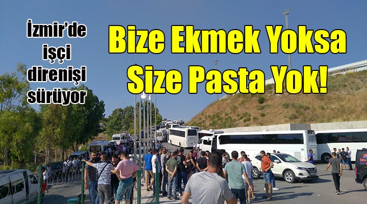 İş bırakan işçilere, işten atılarak fabrika dışına itilen işçiler de destek verdi. Fabrika bahçelerinde toplanıp, alkışlar ve ıslıklar eşliğinde bir yürüyüş yapan işçiler, "Bize Ekmek Yoksa Size Pasta Yok", "Açlıktan Ölmeyiz Biz Bu Yoldan Dönmeyiz" sloganları attı.