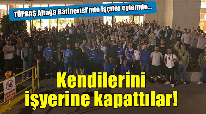 TÜPRAŞ Aliağa Rafinerisi'nde çalışan işçiler, işten çıkarma kararları nedeniyle eylem kararı aldı. Sabah vardiyası ile birlikte kendilerini işyerlerine kapatan işçiler, kararın geri çekilmesini istedi. Daha sonra fabrika bahçesine çıkan işçiler ve Petrol- İş Sendikası yetkilileri, sloganlar atıp kararı protesto etti.