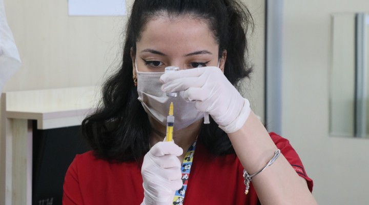 Randevularını aldıktan sonra İzmir Katip Çelebi Üniversitesi (İKÇÜ) Atatürk, İzmir Bakırçay Üniversitesi Çiğli ve Sağlık Bilimleri Üniversitesi Tepecik Eğitim ve Araştırma hastanelerindeki aşı merkezlerine gelen vatandaşlar, TURKOVAC aşılarını yaptırıyor.