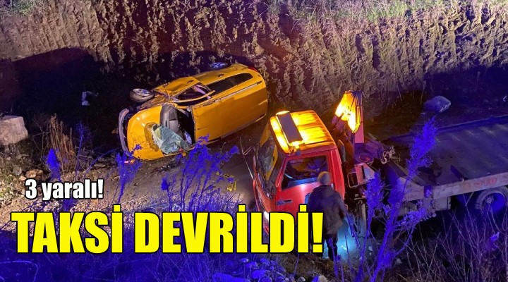 Sürücüsü henüz belirlenemeyen 35 JZ 777 plakalı taksi, Tire-Belevi kara yolunda sürücünün direksiyon hakimiyetini kaybetmesi sonucu yoldan çıkıp devrildi.