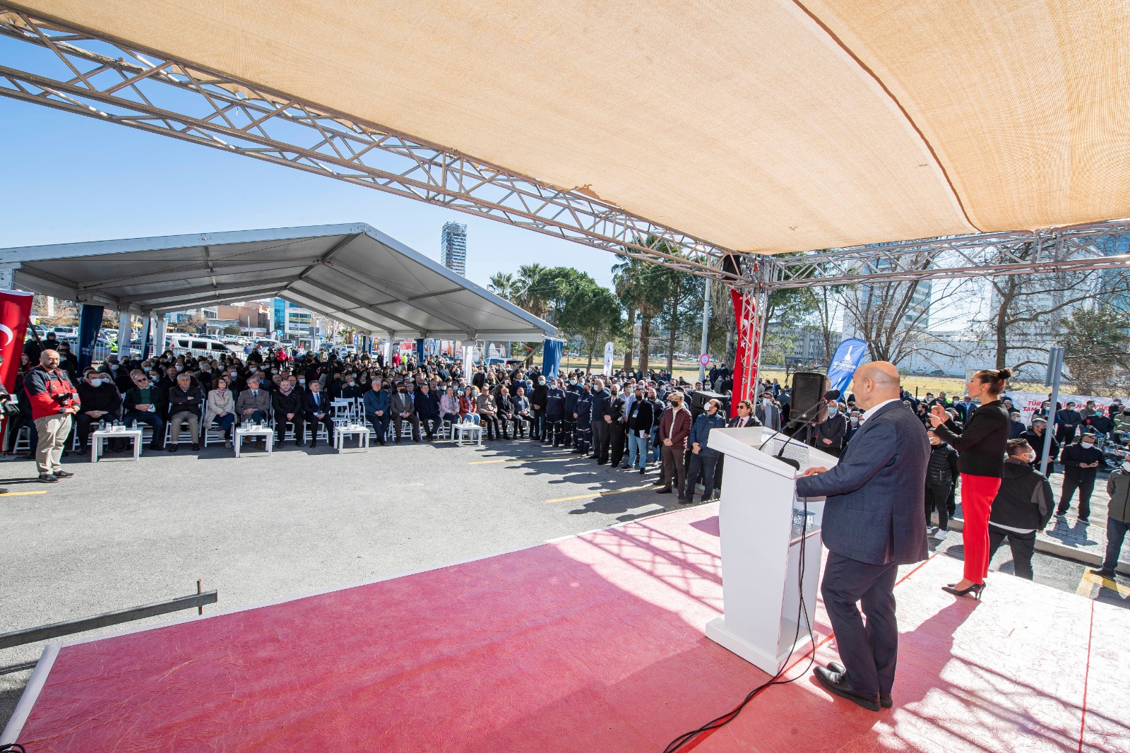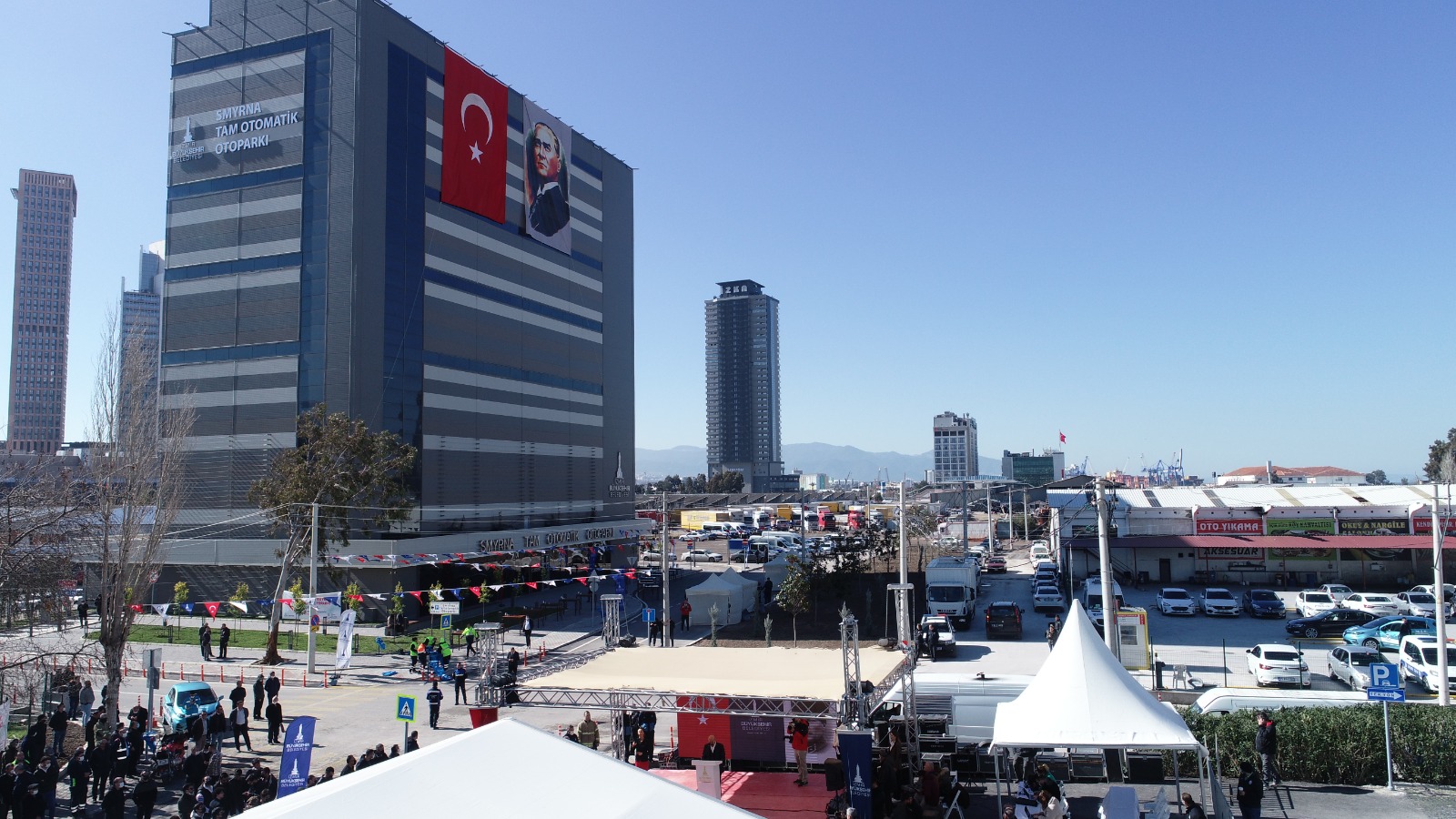Otoparkın açılış töreninde Başkan Tunç Soyer’e, İzmir Büyükşehir Belediyesi Başkan Vekili Mustafa Özuslu, İzmir Büyükşehir Belediyesi Genel Sekreteri Dr. Buğra Gökçe, Bayraklı Belediye Başkanı Serdar Sandal, Konak Belediye Başkanı Abdül Batur, Gaziemir Belediye Başkanı Halil Arda, Seferihisar Belediye Başkanı İsmail Yetişkin, Kemalpaşa Belediye Başkanı Rıdvan Karakayalı, Güzelbahçe Belediye Başkanı Mustafa İnce, İzmir Büyükşehir Belediyesi’nin bürokratları ve belediye meclis üyeleri eşlik etti.