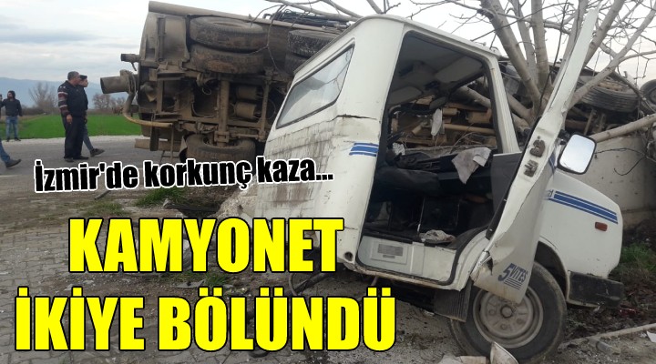 Kaza, dün saat 15.43 sıralarında Tire, Torbalı yolunda meydana geldi. Tire’den Torbalı istikametine seyir halinde olan Hüseyin Tahsin H. yönetimindeki 35 AD 4840 plakalı kamyonet, dönüş yaptığı sırada, karşı yönden gelen Murat Ç. idaresindeki sıvı gübre yüklü tankerle çarpıştı. Çarpışmanın etkisiyle kamyonet iki bölünürken, tanker ise yan devrildi. Kazayı gören çevredeki vatandaşlar, durumu sağlık ekiplerine bildirdi. İhbar üzerine gelen sağlık ekipleri, kazada yaralanan Hüseyin Tahsin H. ve Fikriye H.'yi ambulansla Tire Devlet Hastanesi'ne sevk etti. Yaralıların hastanedeki tedavisi sürerken, hayati tehlikelerinin bulunmadığı öğrenildi. Kazadan yara almadan kurtulan tanker sürücüsü ise ifadesi alındıktan sonra serbest bırakıldı. Kaza ile ilgili soruşturma devam ediyor.