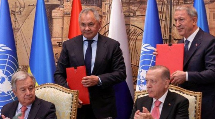Karadeniz üzerinden dünya pazarlarına tahıl ve diğer gıda ürünlerinin taşınmasına ilişkin anlaşma, Cumhurbaşkanı Recep Tayyip Erdoğan ve BM Genel Sekreteri António Guterres’in katılımıyla Dolmabahçe Ofisi’nde imzalandı. üAnlaşmaya Milli Savunma Bakanı Hulusi Akar, Rusya Savunma Bakanı Sergey Şoygu ve Ukrayna Altyapı Bakanı Oleksandr Kubrakov imzalarını attı.