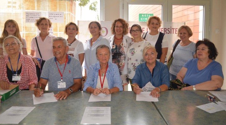 "Çok ciddi bir taleple karşı karşıyayız, yeni kayıt olarak sadece 100 kişi alabiliyoruz, fiziksel şartlarımız çok müsait değil. Amfiler 300 kişi alabiliyor fakat yerimiz olduğunda misafir öğrenci olarak kabul edebiliyoruz. Öğrencilerimiz haftanın üç günü saat 17.00 ile 20.00 arası Ege Üniversitesi Hastanesi 20 Mayıs Amfisinde ders alıyorlar, bu yıl ilk kez mezun vereceğiz. Mezun olacak son sınıf öğrencilerimize 12 hafta boyunca sosyal sorumluluk projelerinde gönüllü olarak nasıl yer alabileceklerini, sivil toplum kuruluşlarına nasıl üye olup proje yönetebilekleri ve kaynak üretebilecekleri konularında proje ödevi vereceğiz. Projeyi başarıyla tamamlayan öğrencilerimiz mezun olabilecek. Bu yıl ki teorik derslerin arasında geriatri, kozmoloji, psikoloji, anatomi ve felsefe gibi dersler yer alırken pratik derslerde ise 'Ben ve ilişkilerim' konulu psikodrama, sevgiyle örüyorum, koro çalışmaları, fotoğrafçılık, yoga ve öykü atölyesi olacak. Dersleri Ege Üniversitesi'nden akademisyenler tamamen gönüllük esasına göre veriyor. Mesai sonrası üniversite amfisinde derslere katılıyorlar."