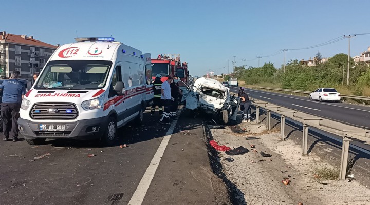 Kaza, saat 08.00 sıralarında Tekirdağ- İstanbul karayolu Kamara Dere mevkisinde meydana geldi. Fabrika işçilerini taşıyan Bülent Dikerler (50) yönetimindeki servis minibüsü, aynı yöne giden Nursel Yeşildağ (60) yönetimindeki otomobile arkadan çarptı. Çarpmanın etkisiyle savrulan otomobil refüje savruldu.