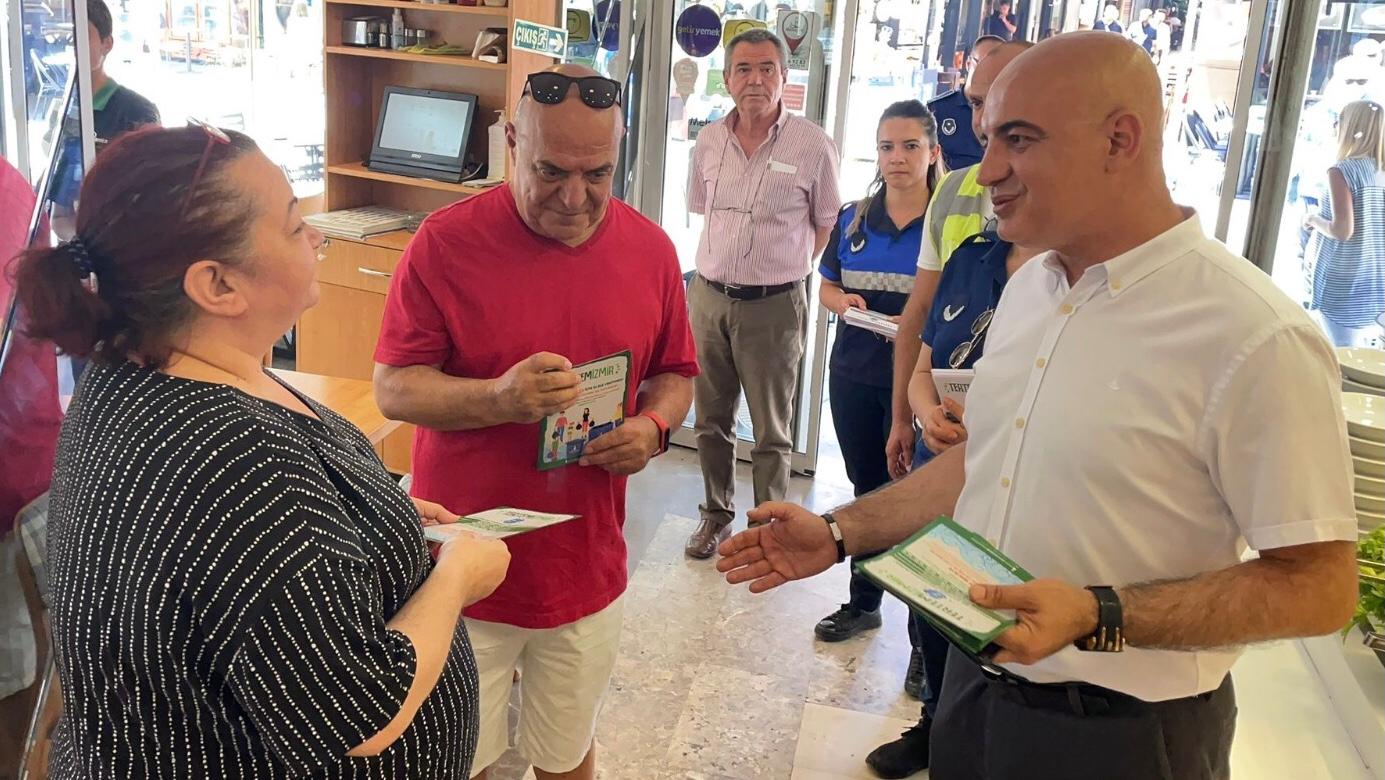 İzmir Büyükşehir Belediyesi kent temizliği konusundaki hassasiyeti artırmak için farkındalık çalışmalarını sürdürüyor. İzmir Büyükşehir Belediyesi Zabıta Dairesi Başkanlığı ile İklim Değişikliği ve Sıfır Atık Dairesi Başkanlığı ekipleri sivil toplum kuruluşlarının da desteğiyle yurttaşları bilgilendirmek için