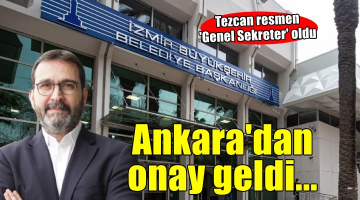 SONKALEİZMİR-İzmir Büyükşehir Belediyesi'nde Eylül ayı sonundan bu yana genel sekreter olarak görev yapan Ramazan Tezcan için Ankara'dan onay geldi.