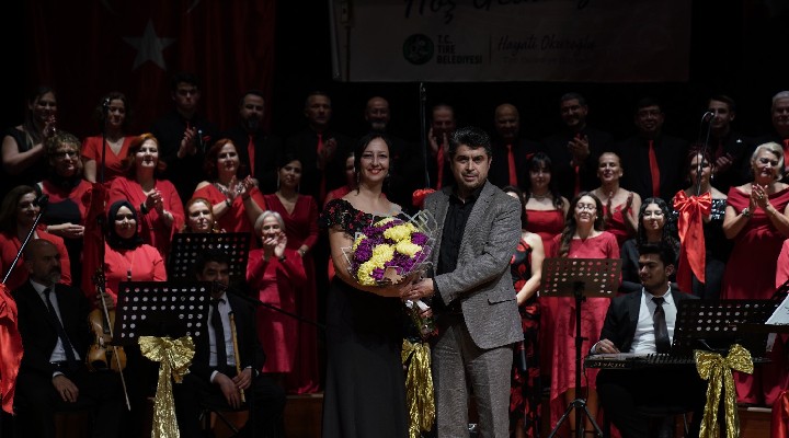 Konsere katılan Tire Belediye Başkan Yardımcısı Yalçın Kaya, konser sonunda Şef Burcu Orbahçe’ye çiçek takdim ederek, koroya teşekkür etti.