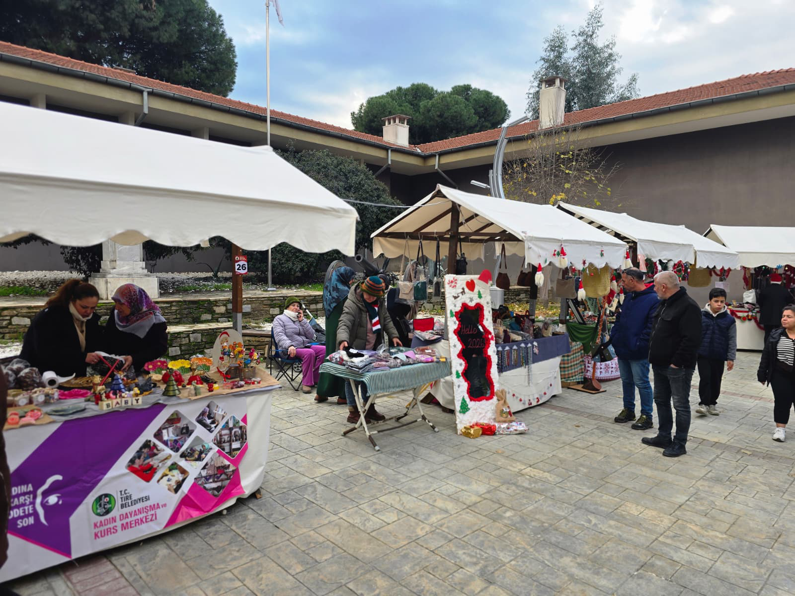 Tire Belediyesinin hayata geçirdiği etkinlikte, Tireli kadınların el emeğiyle ürettiği hediyelik eşyalar, yeni yıl temasıyla hazırlanan rengârenk stantlarda ziyaretçilerin beğenisine sunuldu. Biblolardan süs eşyalarına, şallardan mumlara kadar pek çok ürün pazarda yer aldı.