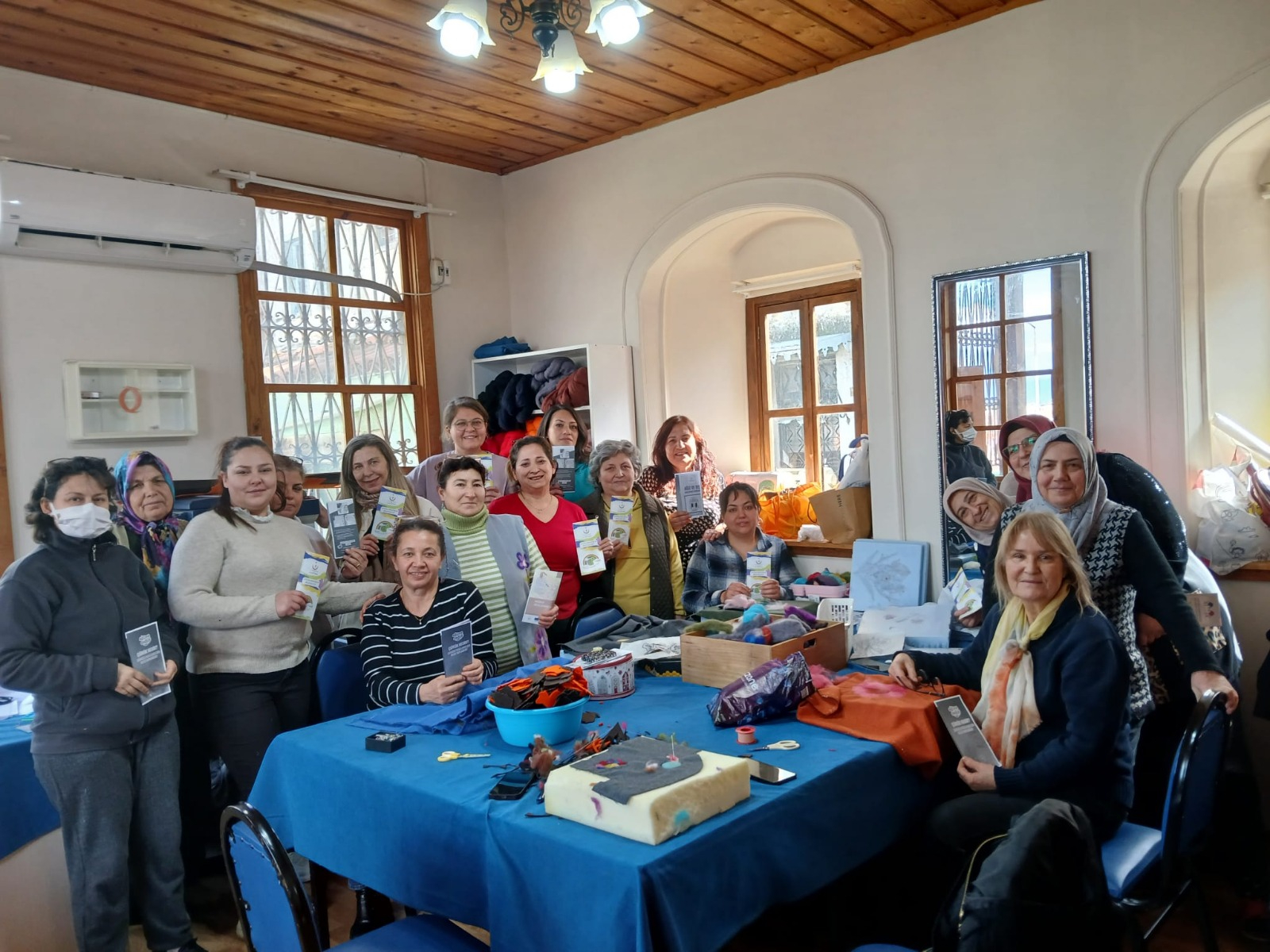 Tire Belediyesi Sosyal Hizmetler Müdürlüğü Kadın Dayanışma Birimi bünyesinde geçtiğimiz ay kapılarını açan Tekstil Üzerine Keçe İşçiliği Kursu, ilçe kadınlarının yoğun katılımıyla faaliyetlerine ara vermeden devam ediyor. Kadınların el emeği ile sanatı buluşturduğu kurs merkezi, sadece mesleki eğitimle sınırlı kalmayıp aynı zamanda önemli bilgilendirme toplantılarına da ev sahipliği yapıyor. Bu kapsamda merkezin bugünkü konukları, kadın sağlığı ve bilinçlendirme çalışmaları üzerine önemli paylaşımlarda bulunan sağlık profesyonelleri oldu.