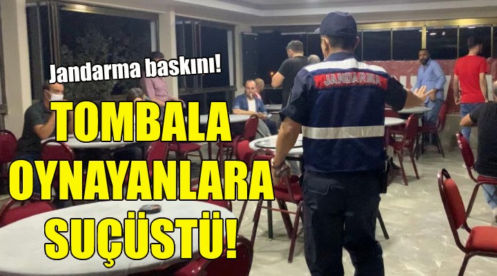 Jandarma ekipleri Menderes Çamönü Mahallesi'ndeki bir adreste kumar oynatıldığı bilgisi üzerine harekete geçti. Adrese yapılan baskında 30 kişi tombala oynarken suçüstü yakalandı.