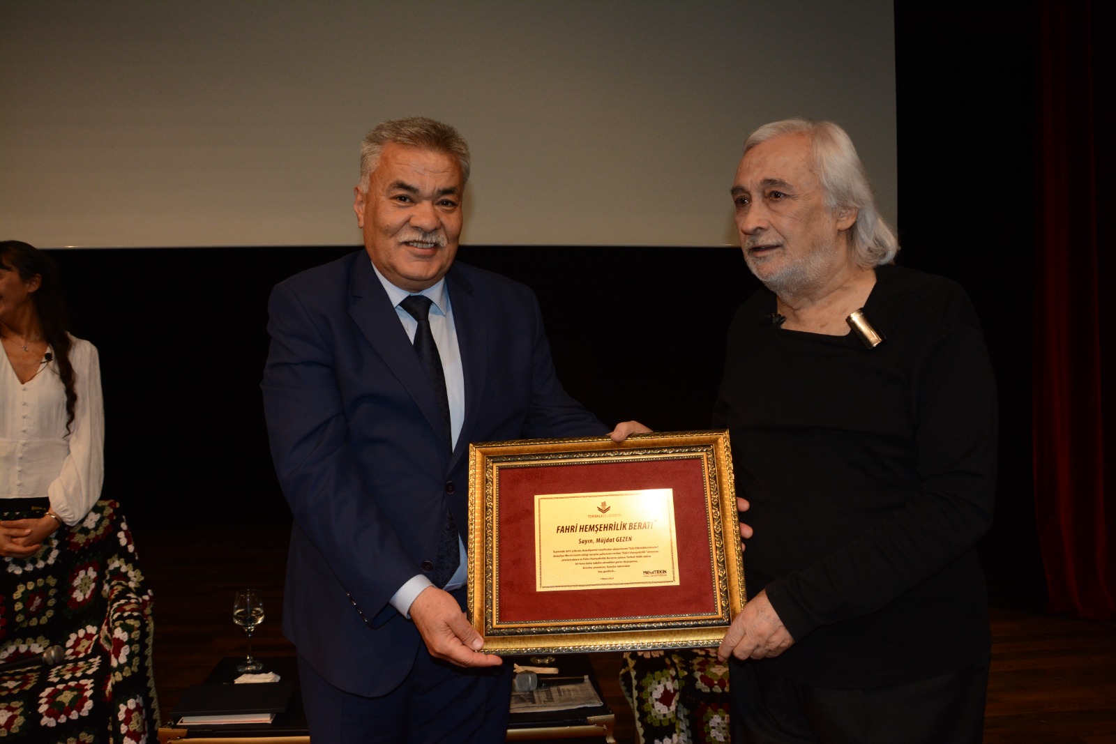 Oyun sonunda, Gezen’in 62.sanat yılı da kutlandı. Gezen için aralarında Cüneyt Arkın, Metin Akpınar, Uğur Dündar gibi çok sayıda sanatçı ve dostunun özel dileklerinin yer aldığı videoyla usta sanatçıya sürpriz yapan Torbalı Belediyesi, ayrıca fahri hemşehri beratını da Gezen’e takdim etti.