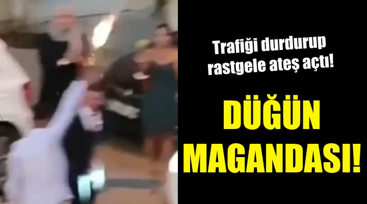 Düğün magandalarının son adresi Bornova oldu. Düğün konvoyu önce araçlarını durdurarak trafiği kilitledi. Araçlarından inerek müzik eşliğinde eğlenen gruptaki bir kişi bir anda belindeki silahı çıkardı.