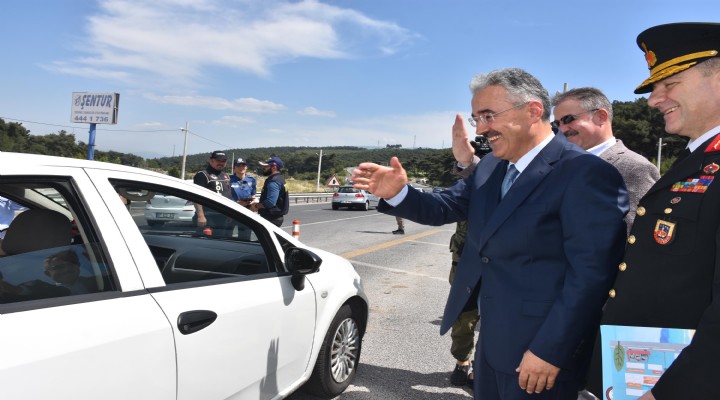 Sürücüler ve aileleriyle birlikte tüm İzmirli vatandaşların Ramazan Bayramı'nı kutlayan Vali Erol Ayyıldız, 9 günlük bayram tatilinde huzurlu bir bayram geçmesi için tüm emniyet, jandarma ve sahil güvenlik ekiplerinin işlerinin başında olduğunu söyledi. Vali Ayyıldız, "Ege Bölgesi ve bilhassa İzmir olarak bu bölgenin ağırlıklı trafiğini biz çekiyoruz. Bu trafiğin bayram güzelliğinde sürmesi için ekiplerimiz havadan, karadan yoğun bir şekilde çalışıyor. Biz de arkadaşlara moral verip, vatandaşların bayramını tebrik etmek için bugün beraber olalım istedik. Gördüğümüz kadarıyla hem vatandaşlar dikkatli olunması konusunda farkındalar hem de görevli arkadaşlar 7/ 24 saat görevlerini yerine getiriyor" dedi.