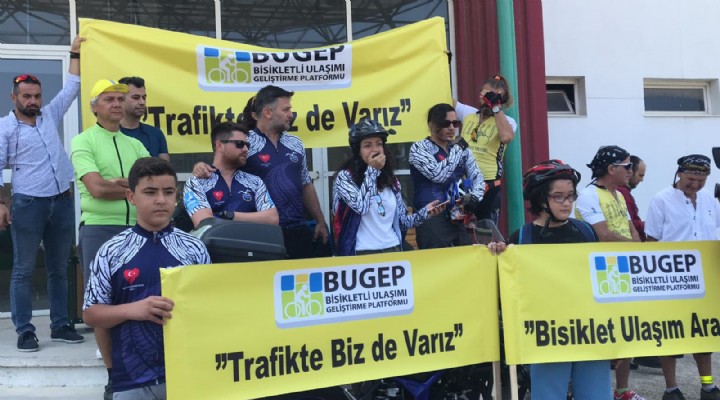 Günlük hayatın her alanında; işte, okulda, alışverişte ulaşımını bisikletle yapan, çevresini koruyan ve doğa dostu bisikletseverlerden oluşan Bisikletli Ulaşımı Geliştirme Platformu (BUGEP) üyeleri, bisikletin bir araç olduğunu bu nedenle trafikte seyir hakları bulunduğunu hatırlatmak için basın açıklaması yaptı. Aliağa ENKA Spor Salonu Önünde bugün saat 11.00 sıralarında bir araya gelen onlarca bisikletli, daha yaşanır, temiz ve sağlıklı bir dünya için bisikletin yaşamın her alanında kullanılmasının sağlanması gerektiğini vurguladı. Bisikletleriyle gelen BUGEP üyeleri 'Trafikte biz de varız', 'Doğayı koru bisiklet kullan', 'Bisiklette takıl, trafiğe takılma', 'Bisiklet kullan park yeri arama', 'Sağlık için pedalla' ve 'Doğayı koru, bisiklet kullan' yazılı pankart ve afişler taşıdı.
